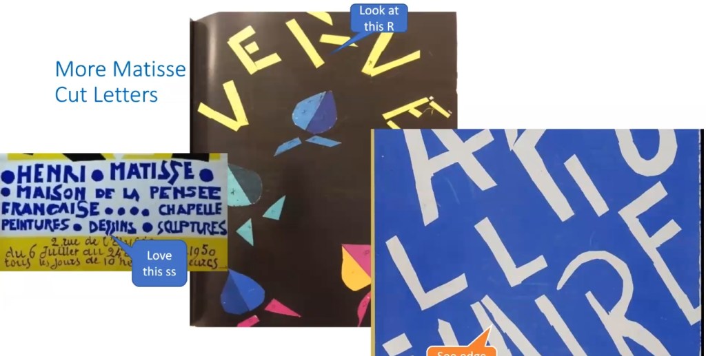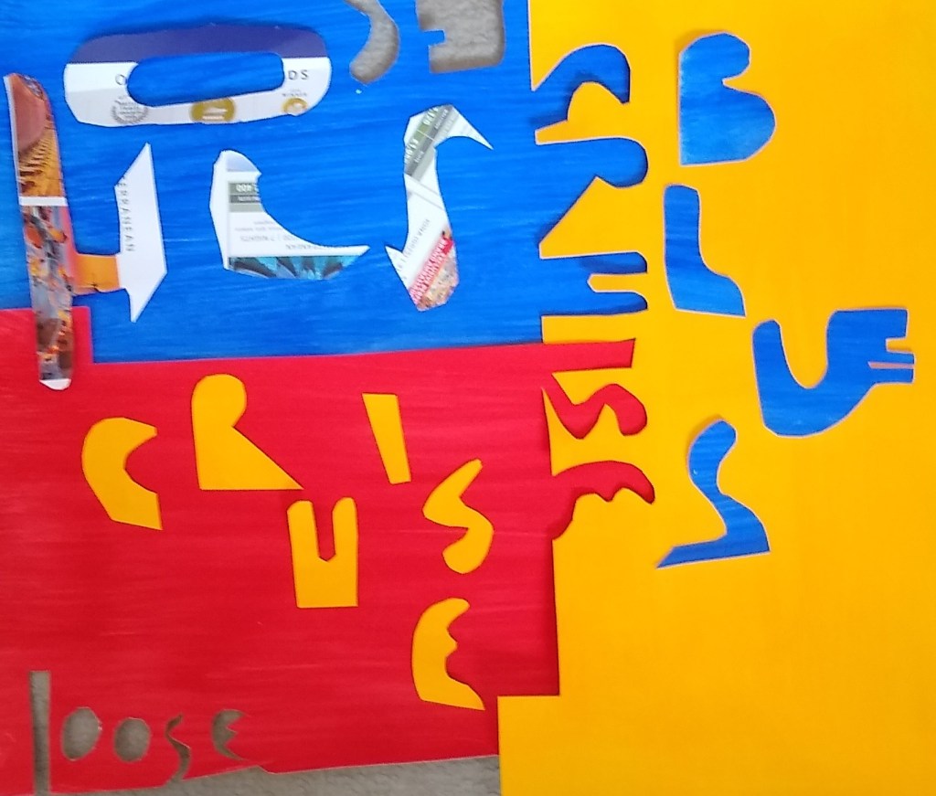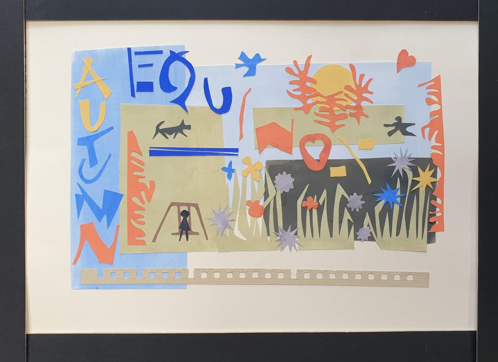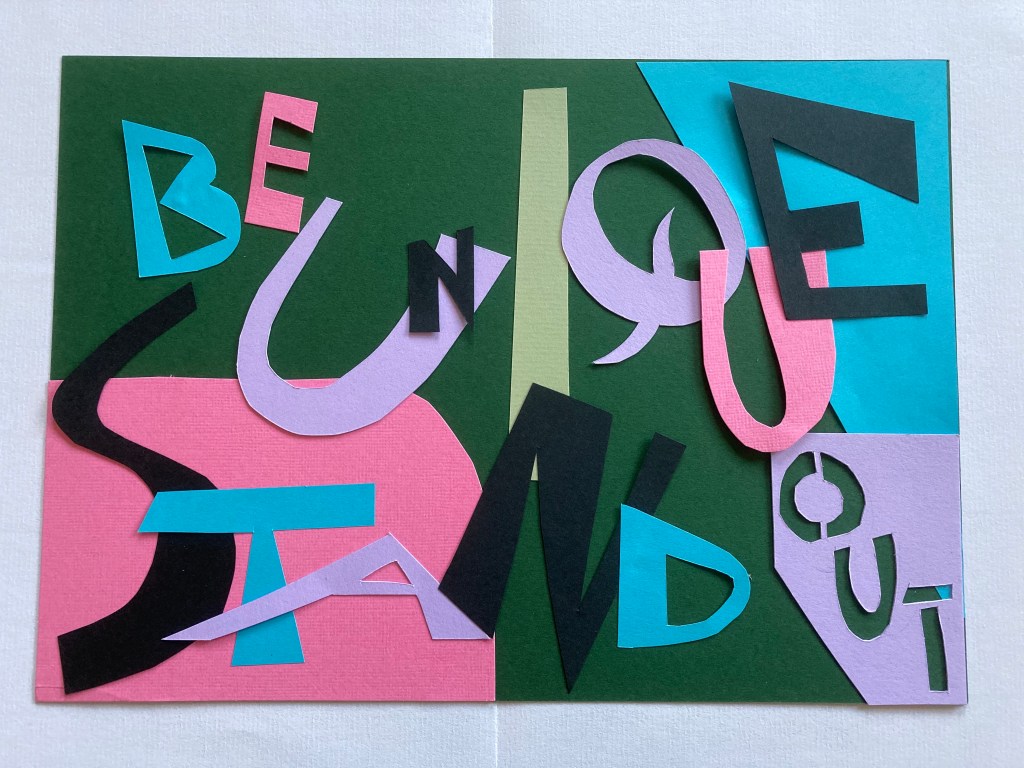 We had our first Zoom workshop on Saturday with Adele Dark. There were 17 participants in total and Josie and Sue were hosting. Adele explained aspects of colour theory to us in the morning with advice on cutting letters. Over lunch we were encouraged to paint sheets of paper with gouache and use the dry sheets to cut out test squares and letters. In the afternoon session we looked at composition and started our own designs based on a short text. Thanks to everyone for getting to grips with the technology and although it wasn’t as good as meeting up at Highnam and we missed the social aspect, it gave us a lot of ideas for developing our cut-outs for a group feedback session in two weeks.