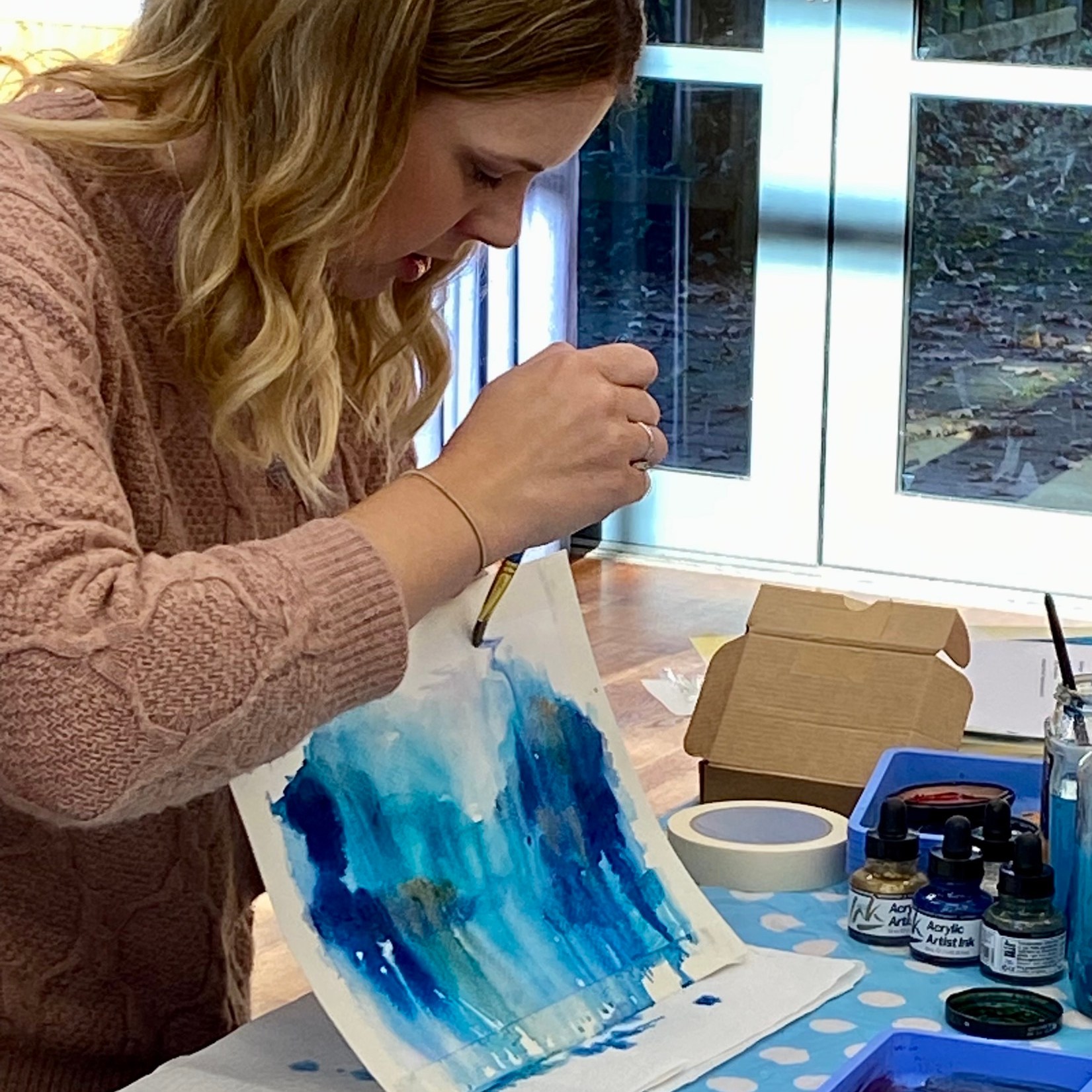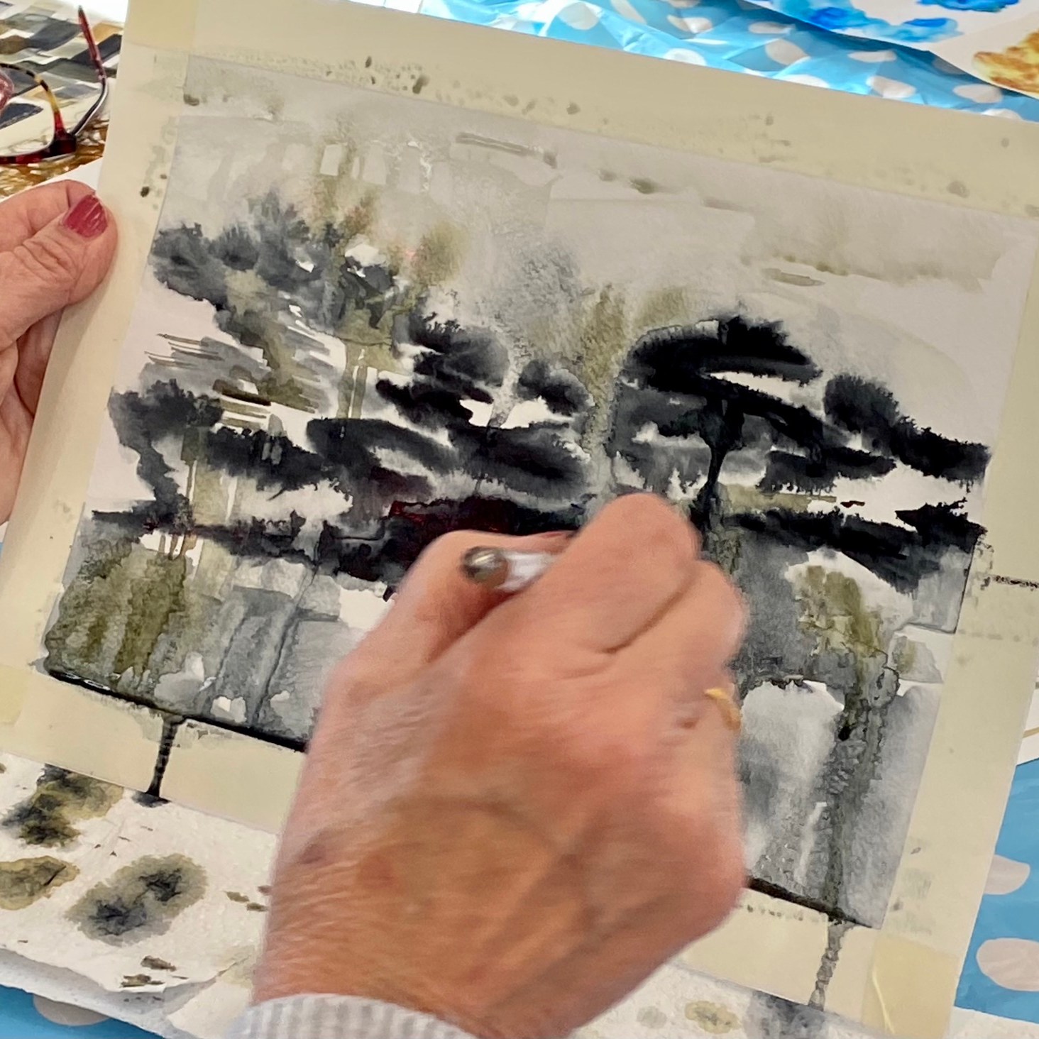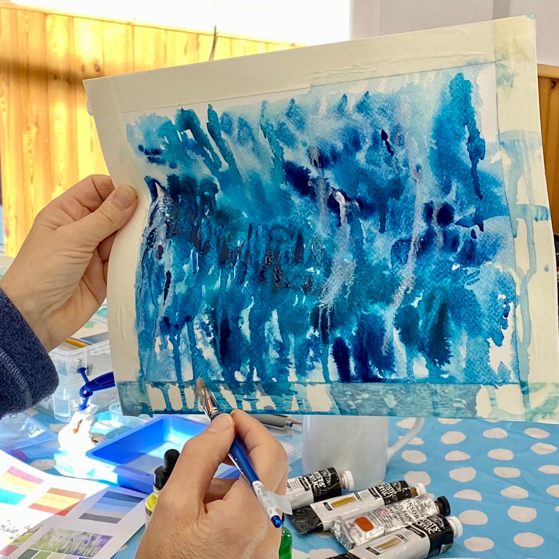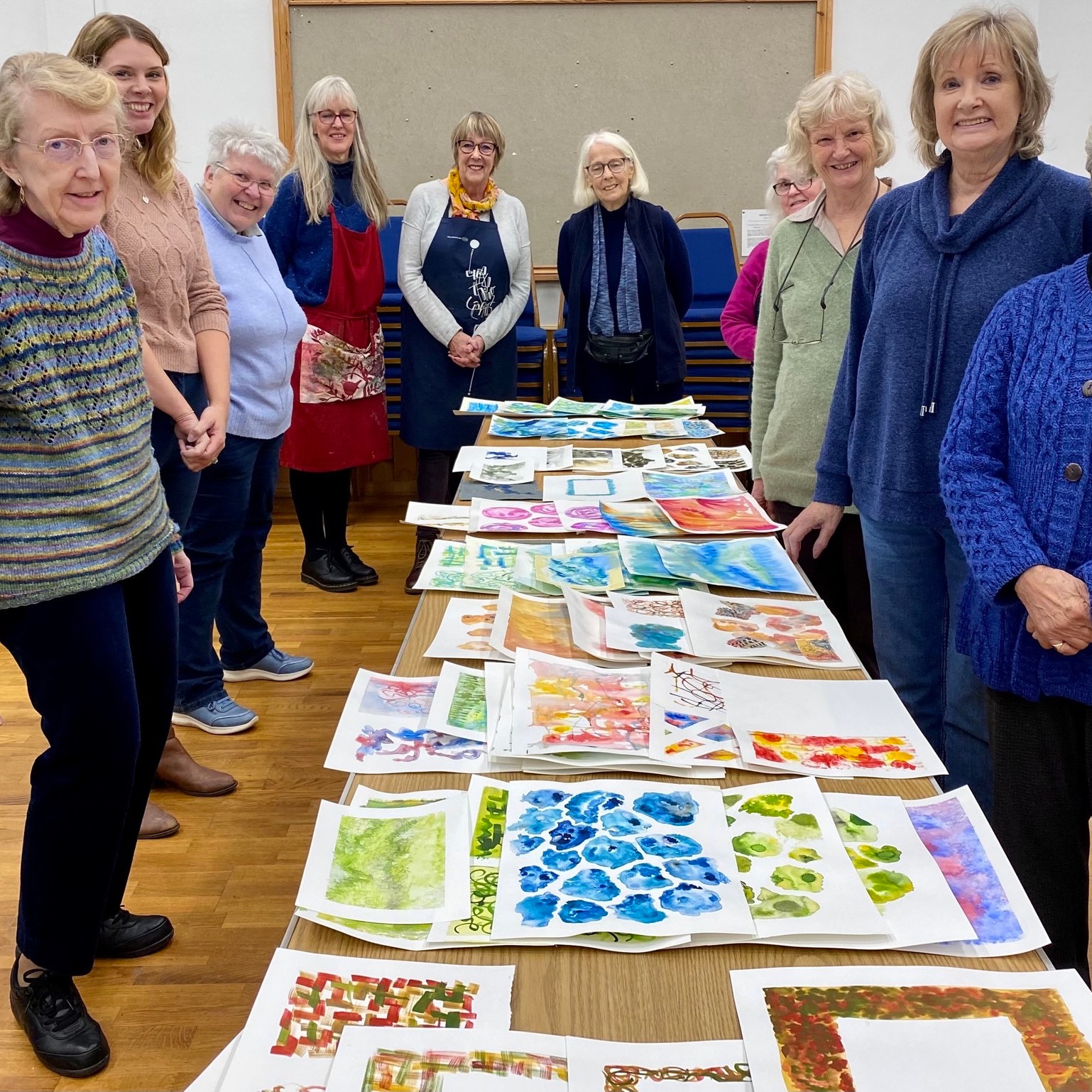 We enjoyed a fabulous day, experimenting and playing, it was really uplifting to just use our acrylic inks, gouache and watercolour paints with plenty of water. Christina guided us throughout the day providing colour palettes to keep us away from “muddy” outcomes. This was a popular event with our members leaving with a variety of beautiful abstract backgrounds.