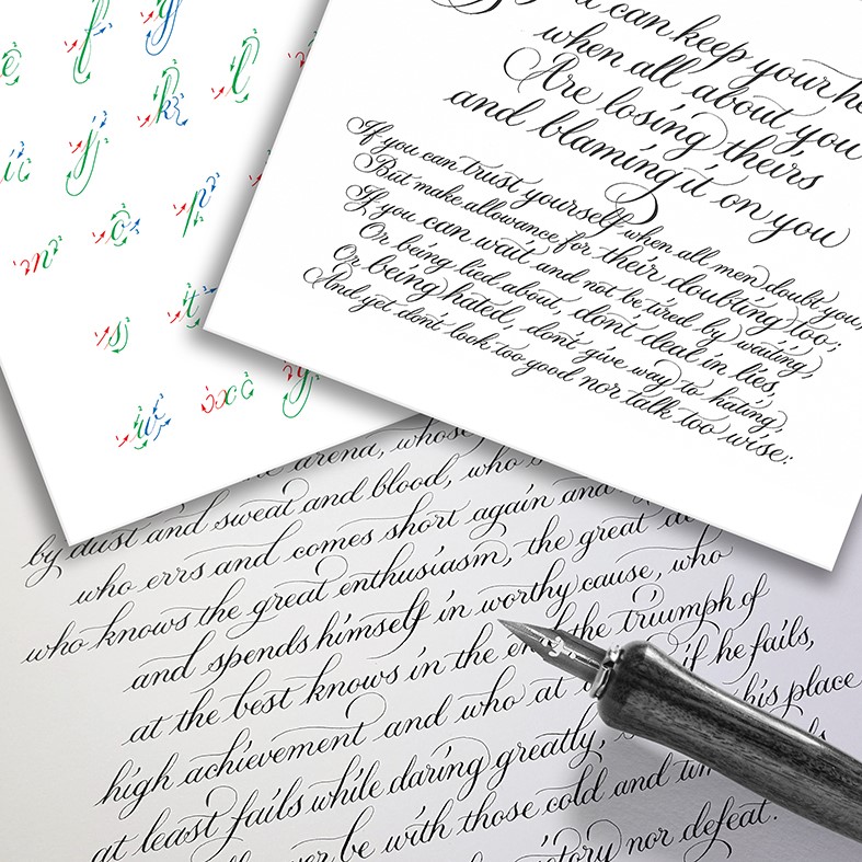 We will begin with a brief introduction to the history and development of Copperplate and then practise the technique of ‘Pressure and Release’ by performing exercises with careful consideration to posture and rhythm. We will learn to write the lower case letters, identifying the basic strokes, entry and exit strokes and then to join the letters up into words.