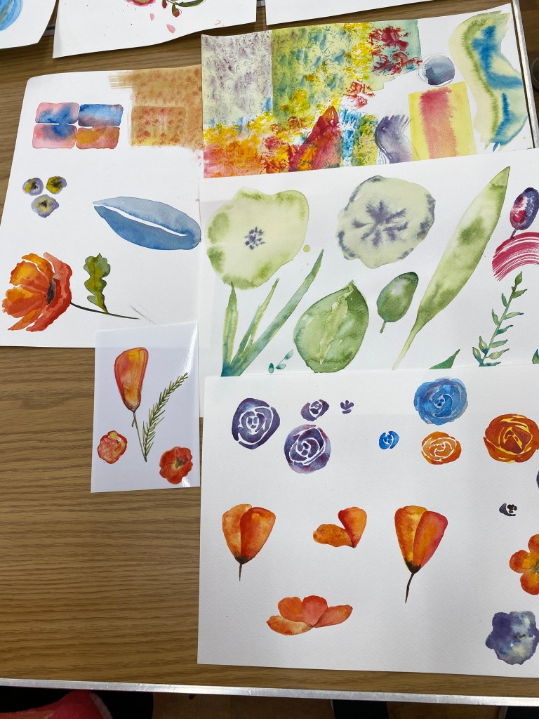 This really was a fun filled day learning to let loose and to create roses, poppies and all types of flowers and abstract patterns. We spent time exploring and blending inks and seeing how to use them to create beautiful work. The acrylic inks dispersed in a variety of ways and when dry we were are able to use calligraphy pen and ink over the surface with ease. It was a great way to learn something new and fun.