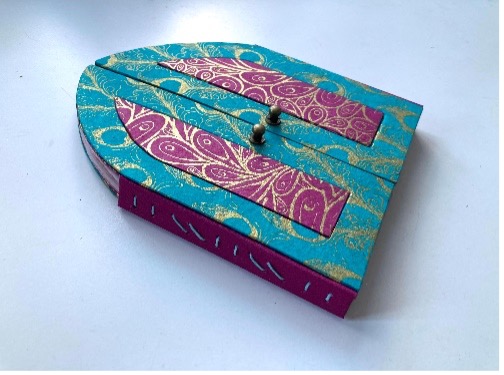 What better way to spend a Saturday in November than creating a structure to record special memories. The Triptych Shrine Book workshop led by Anna Yevtukh-Squire was a full day of cutting, sticking and sewing to produce a delightful binding. and she had put together packs of materials for us to save time. It was definitely a challenge to get it all completed but we mostly managed to take home a completed book.