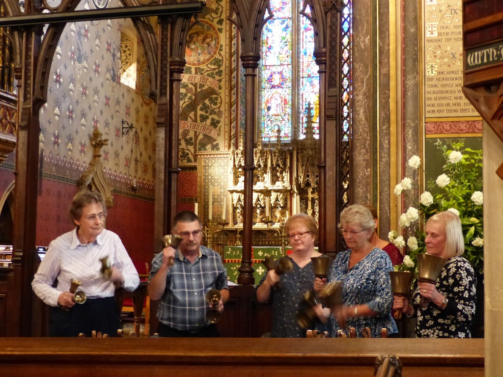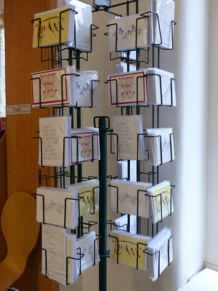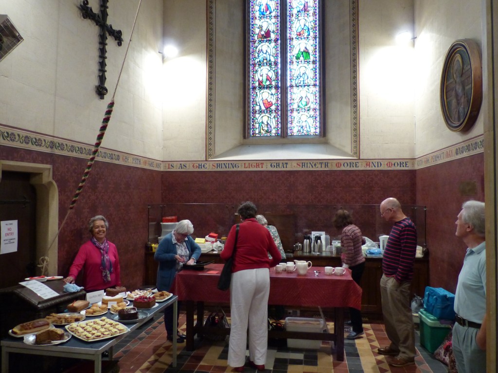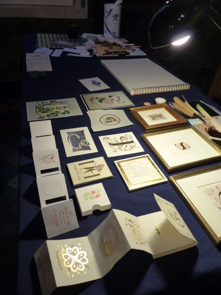 As part of the Gloucester History Festival, we set up quill-making, gilding and calligraphy demonstrations for the day on 15 September in Holy Innocents Church, Highnam. Along with a display of our work from over the years, we enjoyed musical interludes of singing and bell-ringing. Sales of cakes and recipe cards all contributed to the fund for the restoration of the church.