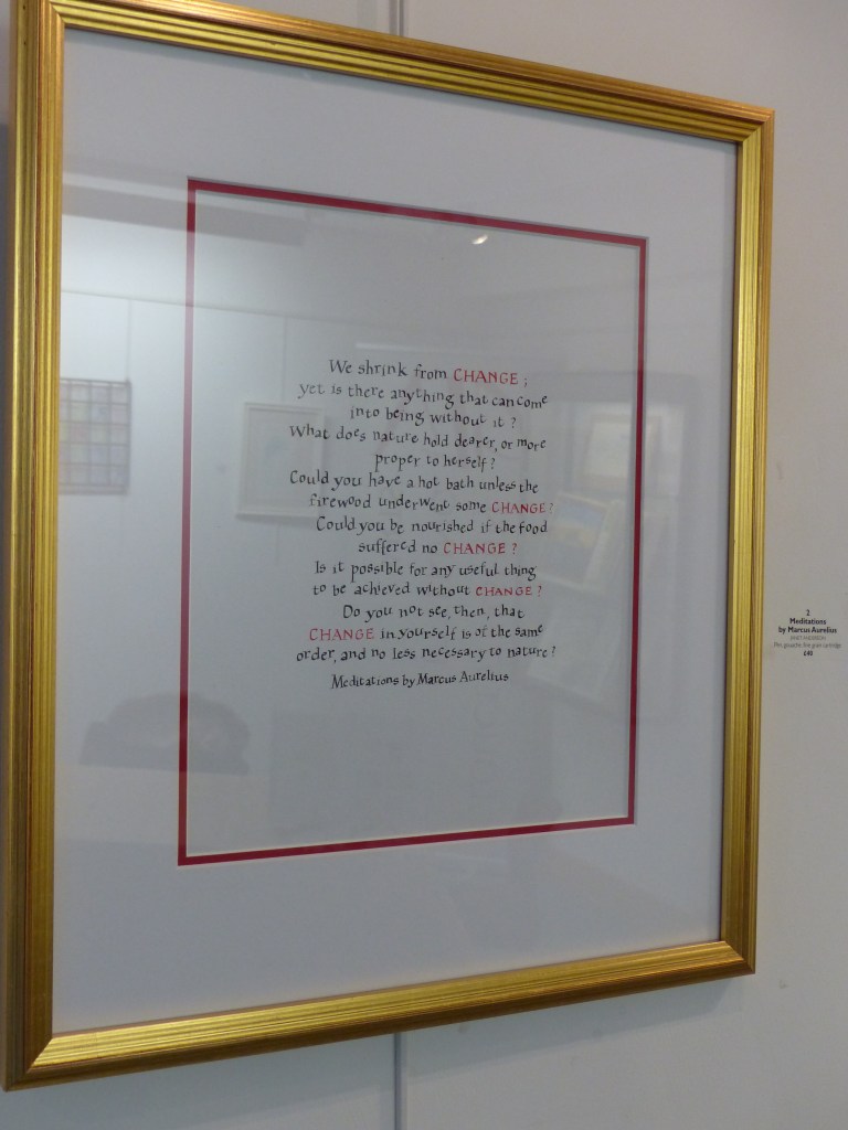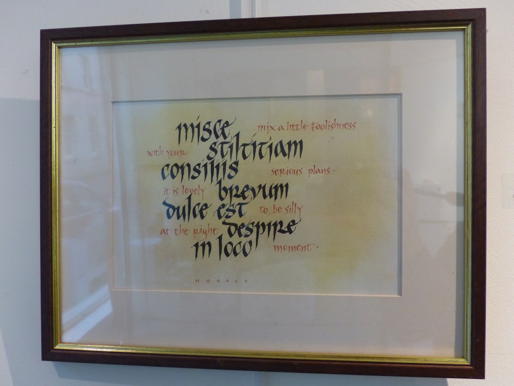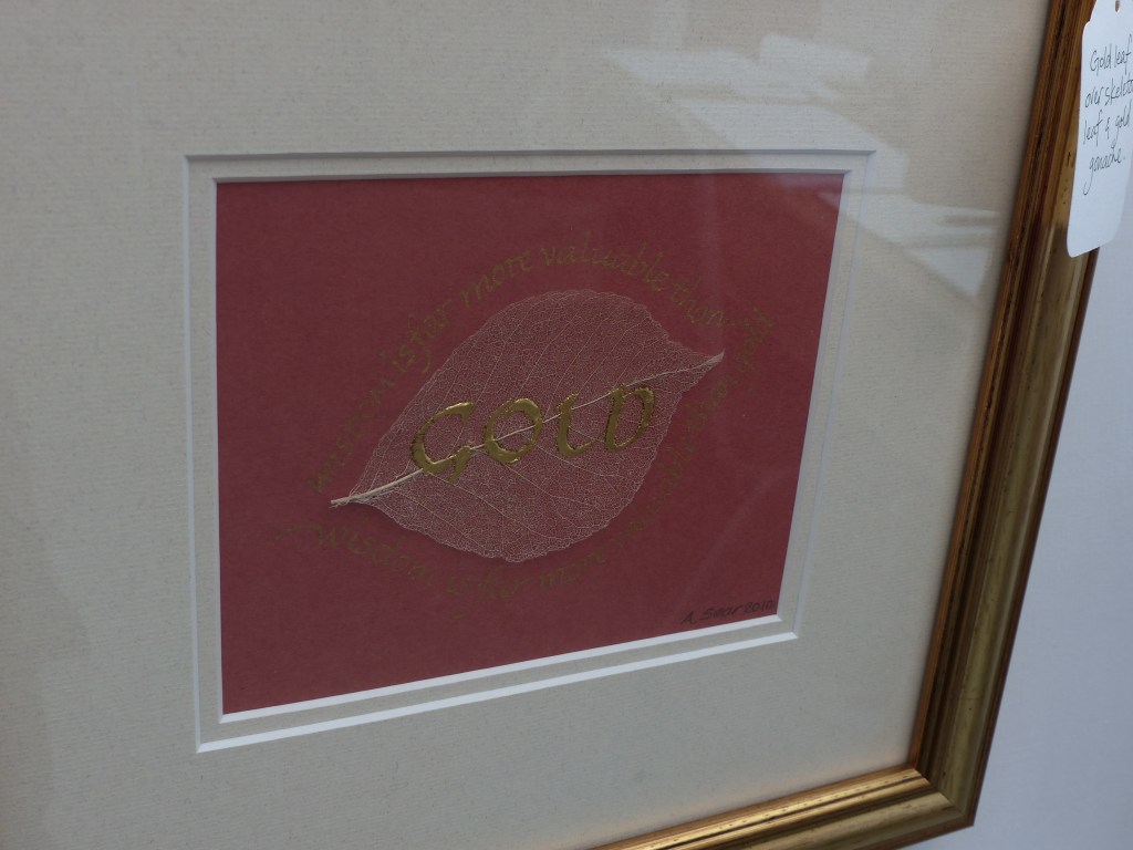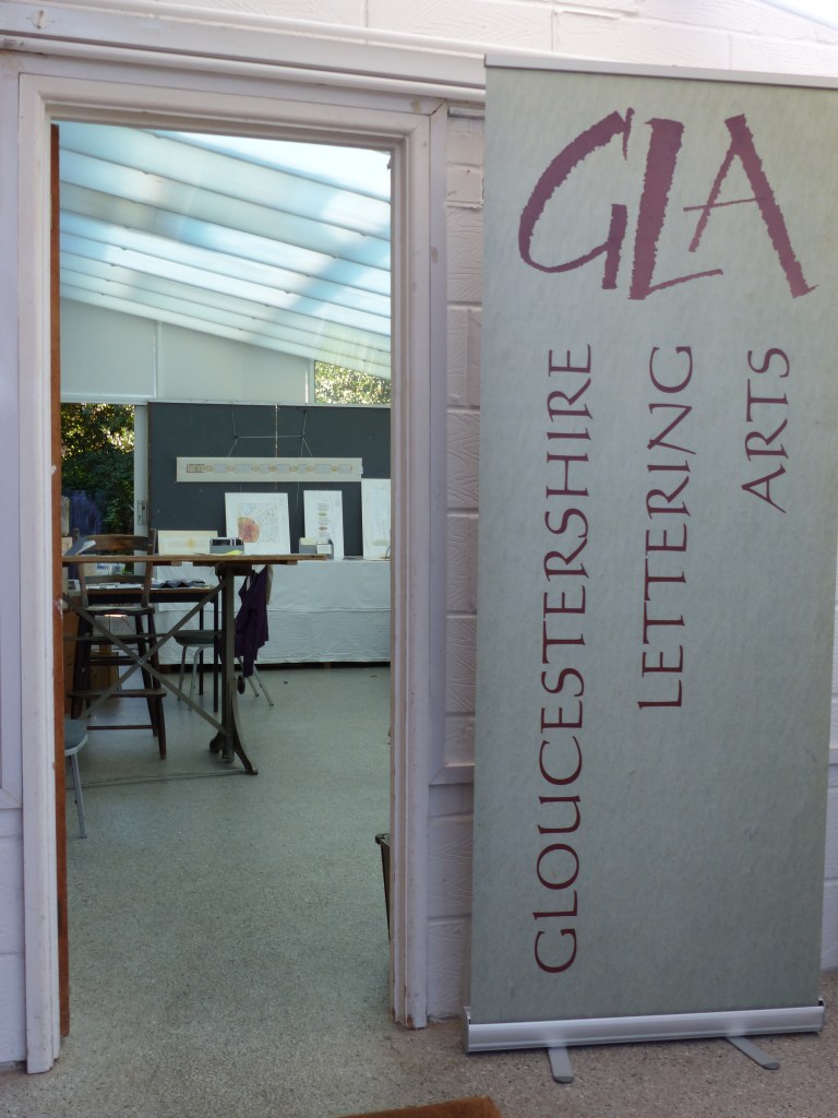 We were artists in residence for a week at Twigworth, showing our lettering skills on paper and stone, and an exhibition of work in gold.