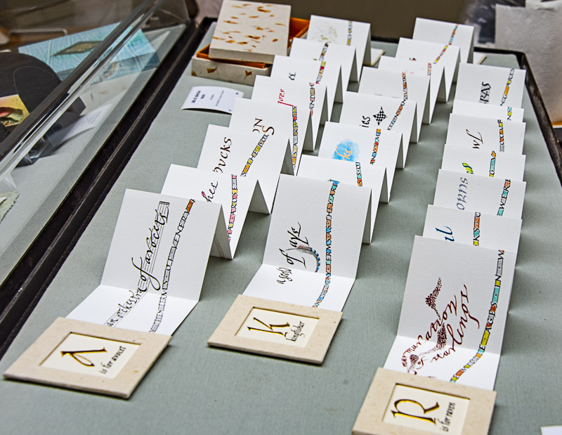 In May 2024 we held our first full exhibition for nearly 10 years! It was held at Nature in Art in Twigworth and over 80 pieces of work were displayed, these included words written on pottery, fabric as well as paper and a large collection of folded items and books. The exhibition was visited by over 700 visitors including our own GLA members, many people interested in taking up the art and those who already enjoy making their own work.